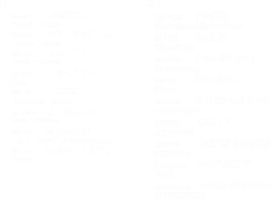 Lost Under Heaven was formed by Ellery James Roberts and Dutch artist Ebony Hoorn after Roberts’ exit from WU LYF. Working out of Manchester, the duo developed a powerful blend of post-punk energy, electronic production and cinematic arrangements. Their early material introduced a dramatic and emotionally charged sound that quickly drew attention within the alternative music scene.